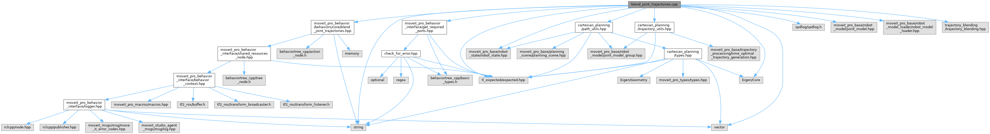 #include "moveit_pro_behavior/behaviors/core/blend_joint_trajectories.hpp"#include <string>#include <vector>#include <spdlog/spdlog.h>#include <Eigen/Core>#include <tl_expected/expected.hpp>#include "cartesian_planning/path_utils.hpp"#include "cartesian_planning/trajectory_utils.hpp"#include "moveit_pro_base/robot_model/joint_model.hpp"#include "moveit_pro_base/robot_model_loader/robot_model_loader.hpp"#include "moveit_pro_base/robot_state/robot_state.hpp"#include "moveit_pro_behavior_interface/get_required_ports.hpp"#include "trajectory_blending/trajectory_blending.hpp"