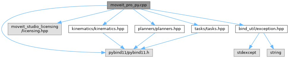#include <pybind11/pybind11.h>#include <moveit_studio_licensing/licensing.hpp>#include "bind_util/exception.hpp"#include "kinematics/kinematics.hpp"#include "planners/planners.hpp"#include "tasks/tasks.hpp"
