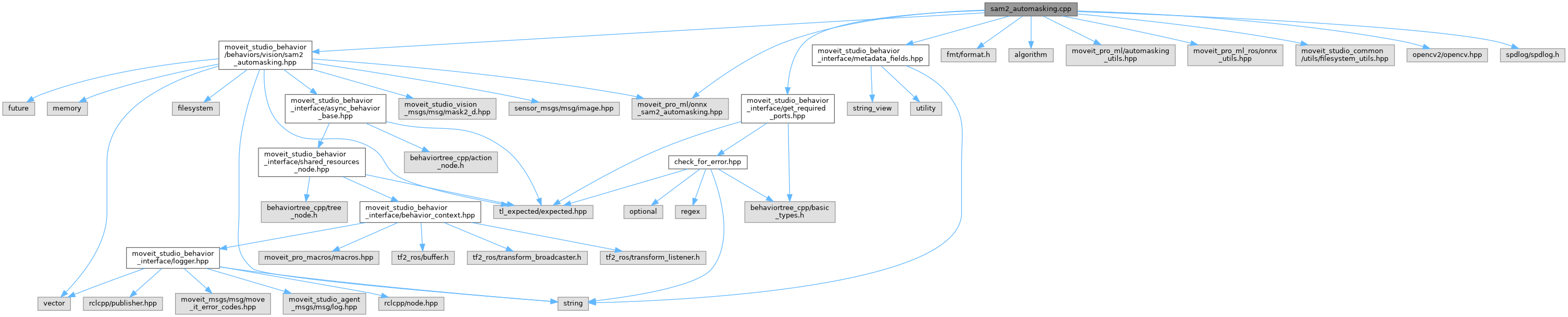#include <moveit_studio_behavior/behaviors/vision/sam2_automasking.hpp>#include <fmt/format.h>#include <algorithm>#include <moveit_pro_ml/automasking_utils.hpp>#include <moveit_pro_ml/onnx_sam2_automasking.hpp>#include <moveit_pro_ml_ros/onnx_utils.hpp>#include <moveit_studio_behavior_interface/get_required_ports.hpp>#include <moveit_studio_behavior_interface/metadata_fields.hpp>#include <moveit_studio_common/utils/filesystem_utils.hpp>#include <opencv2/opencv.hpp>#include "spdlog/spdlog.h"